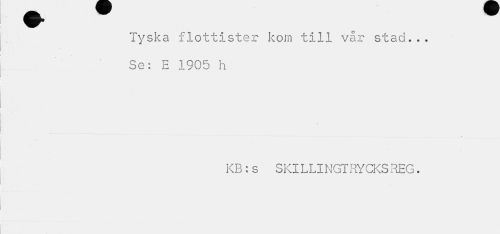 //// Tyska flottister kom till vår stad... Se: E 1905 h //// KB:s SKILLINGTRYCKSREG. ////