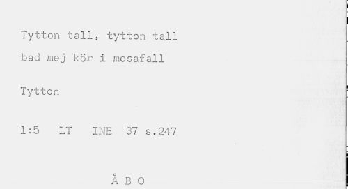 //// Tytton tall, tytton tall bad mej kör i mosafall //// Tytton 1 //// 1:5 LT INE 37 s.247 //// ÅBO ////