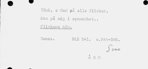 //// Tänk, o Gud på alla flickor, Men på mig i synnerhet.. Flickans bön. //// Ramsa. SLS 541. s.844-345. //// jVo //// ÅBO ////