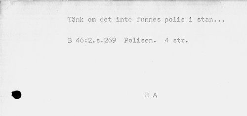 //// - , t . • - - , r //// ¦ ~ - ¦ . • . ¦ ' » //// Tänk om det inte funnes polis i stan... //// B 46:2,s.269 Polisen. 4 str. //// » //// \ ////