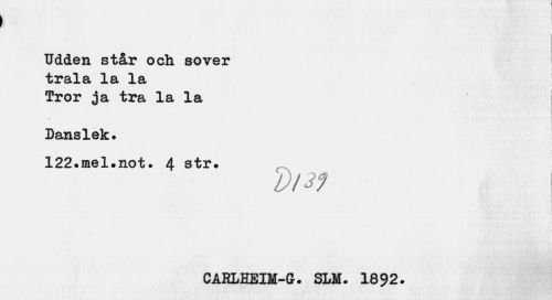 //// i I //// Udden står och sover //// trala la la //// Tror ja tra la la //// .t //// , i //// Danslek. //// i //// 122.mel.not. 4 str. //// d/39 //// ¦ //// i //// . i //// CARLHEIM-G. SLM. 1892. ////