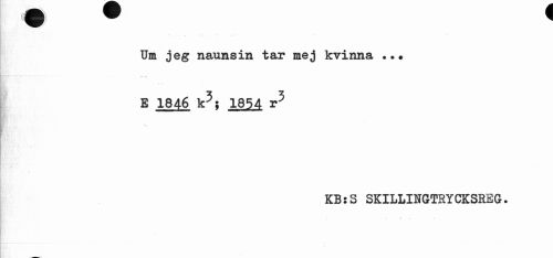 //// Um jeg naunsin tar mej kvinna ... E 1846 k5; 1854 r5 //// KB:S SKILLINGTRYCKSREG. ////