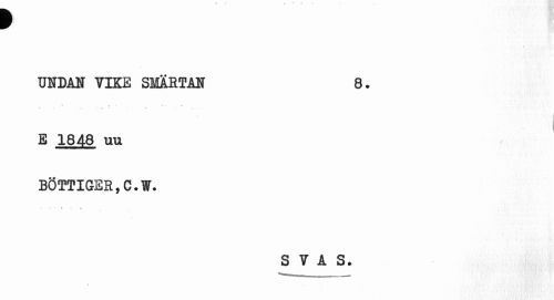 //// p //// UNDAN VIKE SMÄRTAN 8. //// ^ • " •• i //// l //// E 1848 uu BÖTTIGER,G.W. //// S V A S. ////