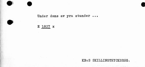 //// Under dans av yra stunder ... //// E 1827 x //// KB :S SKILLINGTRYCKSREG. //// •¦ '• • : i //// •" ¦ " ...• s. . .. • ////