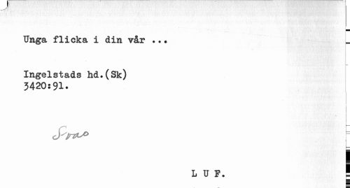 //// Unga flicka i din vår ... L //// Ingelstads hd.(Sk) //// 3420:91. //// r i //// LO. ! ////