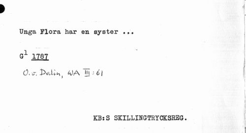 //// } 1 //// I //// Unga Flora har en syster ... //// G1 1787 j //// O. ir. J>aiH ( 1 //// { //// i i //// c //// ¦ //// KB:S SKILLINGTRYCKSREG. //// t I ////
