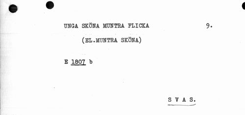 //// UNGA SKÖNA MUNTRA FLICKA 9. //// i i r m - //// (EL.MUNTRA SKÖNA) //// E 1807 b //// r //// S V A S. ////