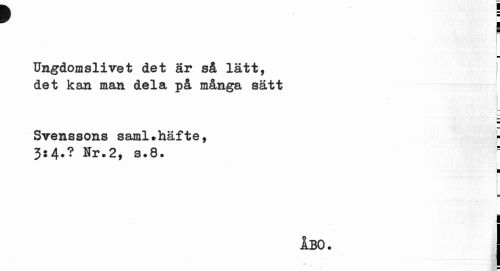 //// I //// r //// i //// Ungdomslivet det är så lätt, det kan man dela på många sätt //// Svenssons saml.häfte, f //// 3:4.? Nr.2, s.8. //// ¦ //// ÅBO. I //// 9 ////