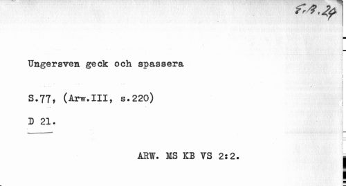 //// T rf. ty //// » //// Ungersven geck och spassera //// S.77, (Arw.III, s.220) D 21. //// ARW. MS KB VS 2:2. | //// I //// P ////