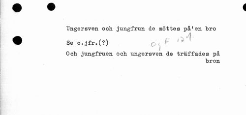 //// Ungersven och jungfrun de möttes på!en bro //// • *!K W I r ' //// Se o.jfr»(?) D I //// I //// Och jungfruen och ungersven de träffades på //// bron //// % ////