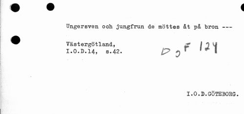 //// Ungersven och jungfrun de möttes åt på bron --- //// ^^ Västergötland, * I 2 i //// i.o.d.14, s.42. i? 0 //// I.0.D.GÖTEBORG. ////