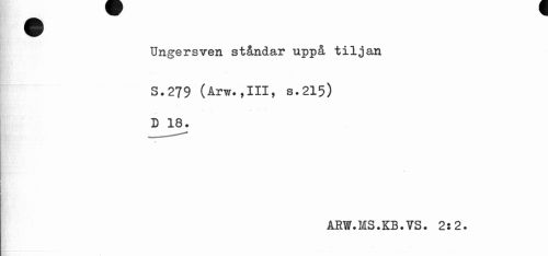 //// Ungersven ståndar uppå tiljan //// S.279 (Arw.,111, s.215) //// D 18. //// fk //// ÅRW.MS.KB.VS. 2s2. ////