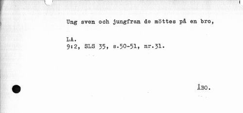 //// Ung sven och jungfran de möttes på en bro, LA. //// 9:2, SLS 35, s.50-51, nr.31. //// -; ////