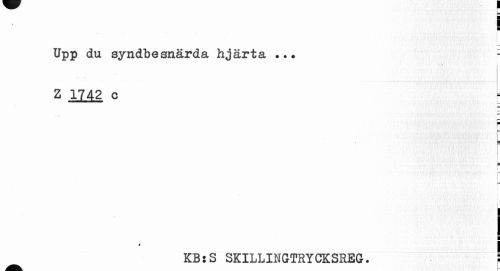 //// Vi'i i i ' J //// Upp du syndbesnärda hjärta ... = //// i //// Z 1742 c //// k //// i //// = //// I //// r //// i //// v j //// i //// KB:S SKILLINGTRYCKSREG. I ////