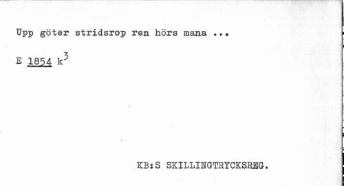//// Upp göter stridsrop ren hörs mana ... | //// E 1854 k5 //// -¦ //// v //// i //// KB:S SKILLINGTRYCKSREG. ////