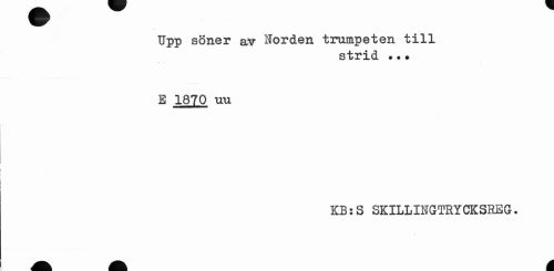 //// Upp söner av Norden trumpeten till //// strid ?•• //// E 1870 uu //// KB:S SKILLINGTRYCKSREG. ////