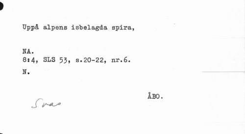 //// r //// Uppå alpens isbelagda spira, HA. //// 8:4, SLS 53, s.20-22, nr.6. //// N. --- //// ÅBO. //// J ////