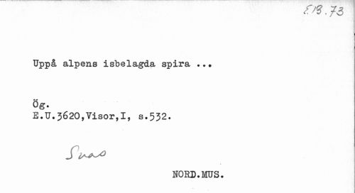 //// ^ rt. //// Uppå alpens isbelagda spira ... Ög. //// E.U.3620,Visor,I, s.532. //// NORD.MUS. ////