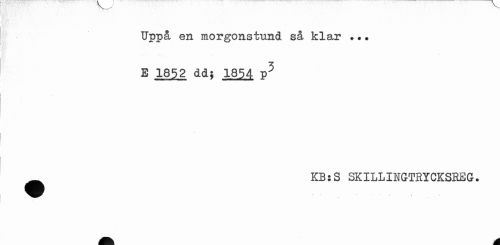 //// Uppå en morgonstund så klar ... //// E 1852 dd; 1854 p5 //// •KB:S SKILLINGTRYCKSBSG. //// i . //// A ////