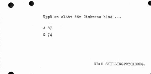 //// Uppå en slätt där Cimbrens "blod ... A 87 //// G 74 //// KB:S SKILLINGTRYCKSRBG. ////