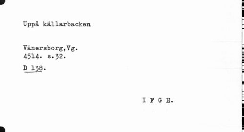 //// Uppå källarbacken ^ //// i //// Vänersborg,Vg. h //// 4514. s.32. S //// D 138. [ //// i //// I P G H. : //// t i ////