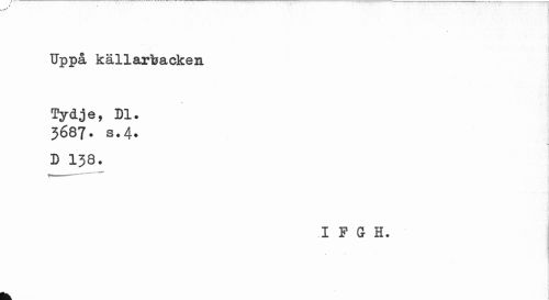 //// Uppå källarbacken //// Tydje, Dl. 3687. s.4. //// D 138. //// I F G H. ////