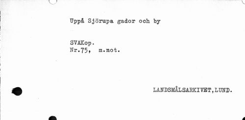 //// Uppå Sjörupa gador och by SVAKop. //// Nr.75> m.mot. //// \ //// ^ LANDSMÅL SARKIVE T,L UNd. ////