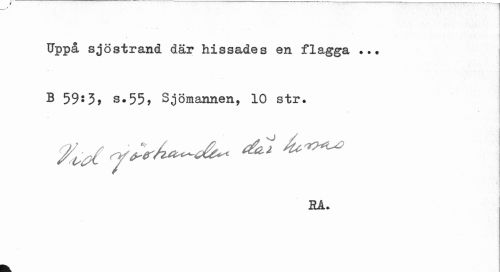 //// Uppå sjöstrand där hissades en flagga //// B 59*3, s-55> Sjömannen, 10 str. //// - //// HÅ. ////