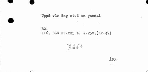 //// Uppå vår äng stod en gammal BÖ. //// 1:6, SLS nr.205 a, s.258,(nr.42) //// ÅBO. ////