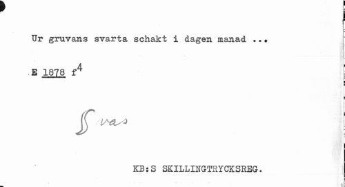 //// f g //// Ur gruvans svarta schakt i dagen manad ? ? * //// i- //// E 1878 f4 E //// fe //// P //// l //// J^ ilAOs* | //// f //// KB:S SKILLIHGTRYCKSREG. //// | ////