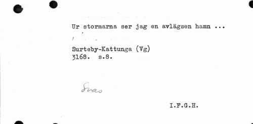 //// Ur stormarna ser jag en avlägsen hamn //// > //// f //// Surteby-Kattunga (7g) 3168. s.8. //// I.F.G.H. ////
