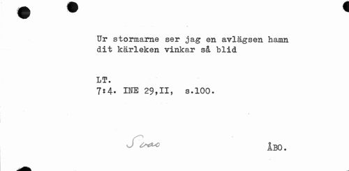 //// Ur stormarne ser jag en avlägsen hamn dit kärleken vinkar så blid //// LT. //// 7:4. INB 29,11, s.lOO. //// ? //// ÅBO. ////