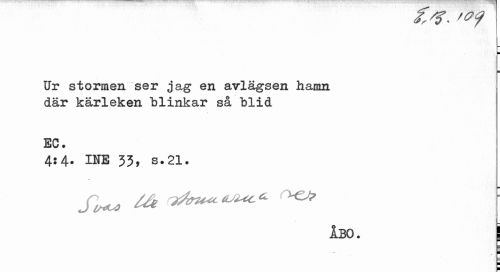 //// Ur stormen ser jag en avlägsen hamn där kärleken blinkar så hlid //// EC. //// 4:4. INE 33, s.21. //// f^ Me (Xbu* //// ÅBO. ! //// ¦ //// " - ; ¦ //// i ////