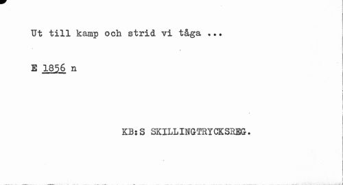 //// Ut till kamp och strid vi tåga ?.? ; //// E 1856 11 //// i i \ //// / 1 //// i //// KB:S SKILLINGTRYCKSHEG. ////