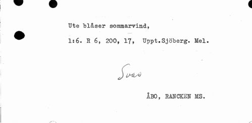 //// Ute blåser sommarvind, //// ^^^^^^^ .»...i. t //// ^ 1:6. E 6, 200, 17, Uppt.Sjöberg. Mel. //// JlML^ //// ÅBO, SÅNCKEN MS. ////