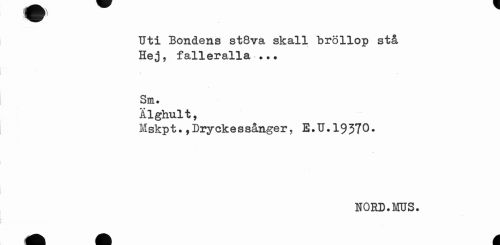 //// Uti Bondens stSva skall bröllop stå Hej, falleralla ?.. //// SRU //// Ålghult, //// Mskpt.,Dryckessånger, E.U.19270. //// HÖRD.MUS. ////