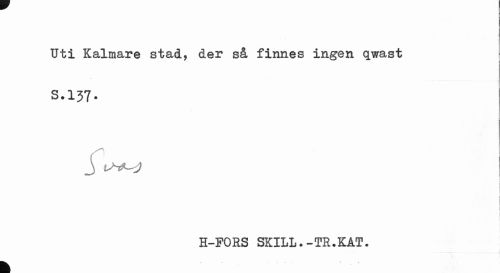//// Uti Kalmare stad, der så finnes ingen qwast //// S.I57. //// i 1 //// H-FORS SKILL.-TR.KAT. //// k ////