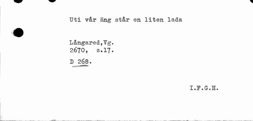 //// Uti vår äng står en liten lada //// Långared,Vg. 2670, s.17. //// D 268. //// I • Gr • H# ////