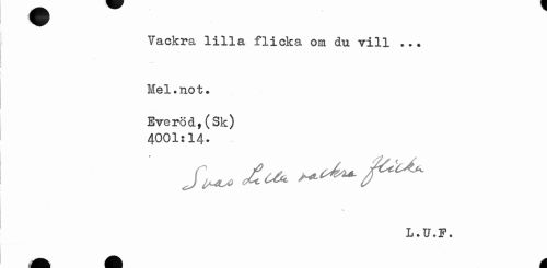//// Tackra lilla flicka om du vill höra //// Mel.not. Everöd,(Sk) //// 4001:14- //// •s //// L.ff.F. ////