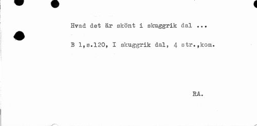 //// Hvad det är skönt i skuggrik dal ... B l,s.l20, I skuggrik dal, 4 str.,kom. //// RÅ. ////