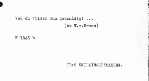 //// i //// I //// Vad du vrider mun gudsnådigt .?• //// (Av W.v.Braun) //// N 1846 h ; //// - : ^ //// i i //// i //// » //// KBsS SK ILL HGTHYCKSREG. ////