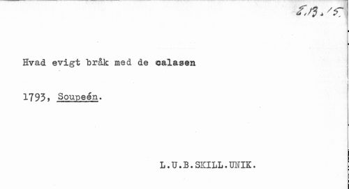 //// I //// I //// Hvad evigt bråk med de calasen //// 1793, Soupeén. //// « //// L.U.B.SKILL.UNIK. i ////