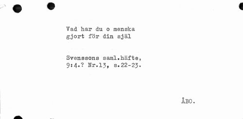//// Vad har du o menska gjort för din själ //// Svenssons saml.häfte, 9:4.? Nr.13, s.22-23. //// ÅBO. ////