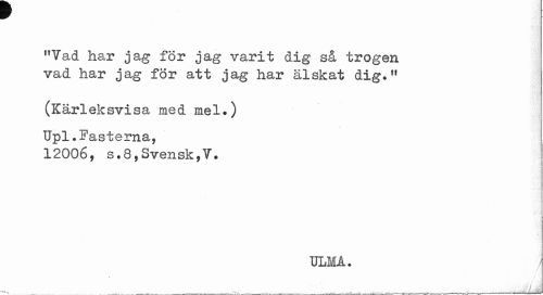 //// "Vad har jag för jag varit dig så trogen vad har jag för att jag har älskat dig.ft //// (Kärleksvisa med mel.) //// Upl.Fasterna, //// 12006, s.8,Svensk,V. //// ULMÅ• ) //// J éi //// _ ___ .. ___'mJL_ ////