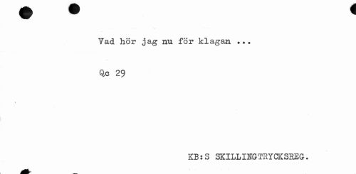 //// Vad hör jag nu för klagan ... Qc 29 //// KB:S SKILLIB5TRYCKSBEG. ////