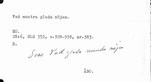 //// I //// i //// I //// Vad muntra glada nöjen. HO. //// 28:6, SLS 352, s.928-938, nr.383. //// v //// n. ^ : //// ÅBO. //// k ////