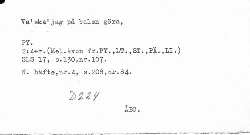 //// Va1ska*jag på balen göra, //// t //// PY. //// 2$4+r. (Mel.även fr.PY. ,LT. ,ST. ,Pl.,LI.) SLS 17, s.130,nr.107. //// N. häfte,nr.4, s.208,nr.84- //// 2^UV //// ABO. //// v ji V . - > ' ' ___ir < ////