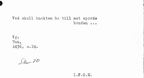//// F | //// Vad skall knekten ha till mat sporde //// bonden ... //// Tg. //// tun, //// 4436, s.24. //// ; //// fA*-?» ////
