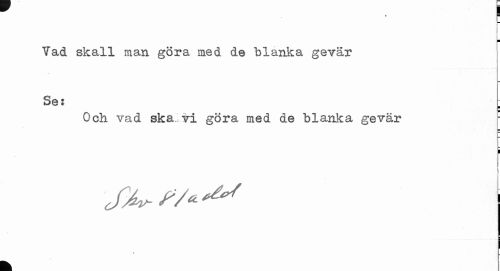 //// ¦ //// "Vad skall man göra med de blanka gevär Se: //// ¦ //// Och vad ska vi göra med de blanka gevär " //// c i //// i //// % //// k ////