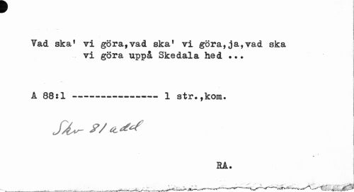 //// i //// Vad ska' Ti göra,vad ska1 vi göra, ja,vad ska //// vi göra uppå Skedala hed ••• //// i //// A 88:1---1 str. ,kom. ////